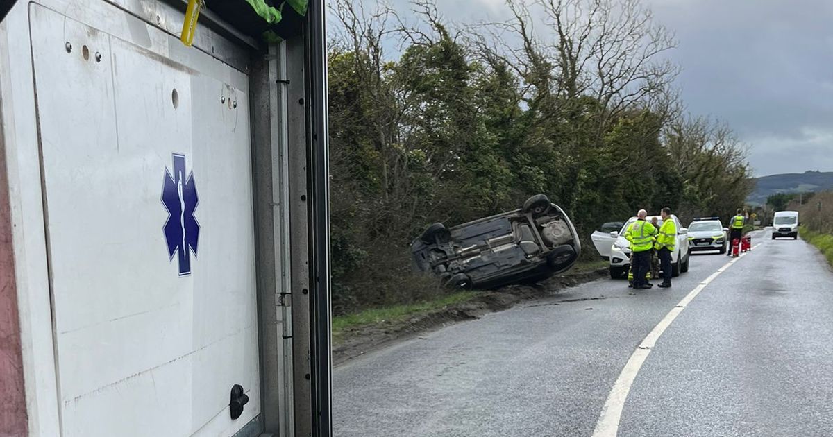Vehicle flips over on south Dublin road as military police assist gardai and firefighters