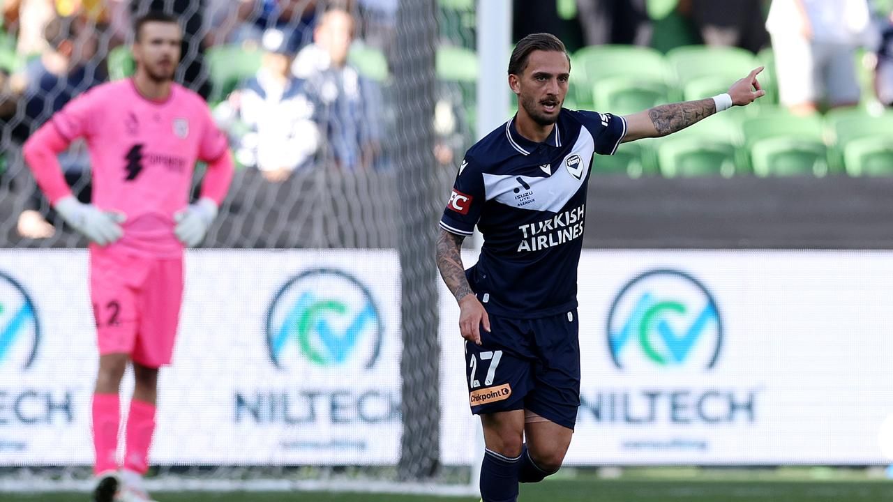 A world-class goal from recruit Reno Piscopo has steered Melbourne Victory to a comeback 2-1 A-League Men win over Macarthur FC.