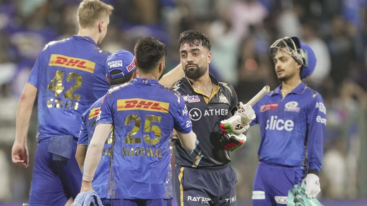 . Rashid Khan’s valiant knock of 79(32) was insufficient as Mumbai Indians registered a 27-run victory against Gujarat Titans in the Indian Premier League (IPL) 2023 at the Wankhede Stadium in Maharashtra’s Mumbai on May 12, 2023.