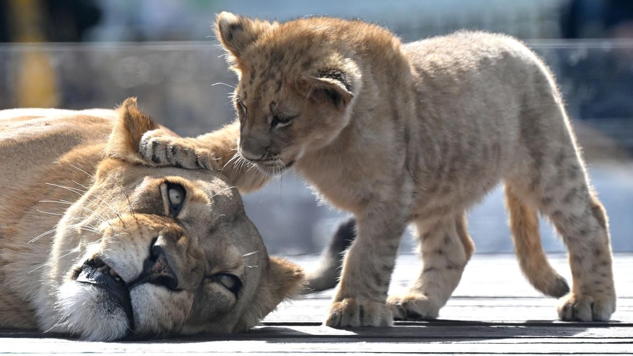 The first lion cub to be born in more than 20 years at a capital city zoo has made her public debut, alongside her doting feline parents.