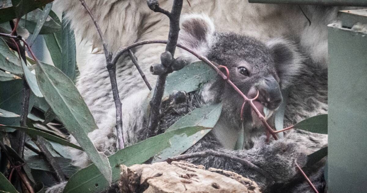 The bundle of fur popped out of mum's pouch to say 'hello'.