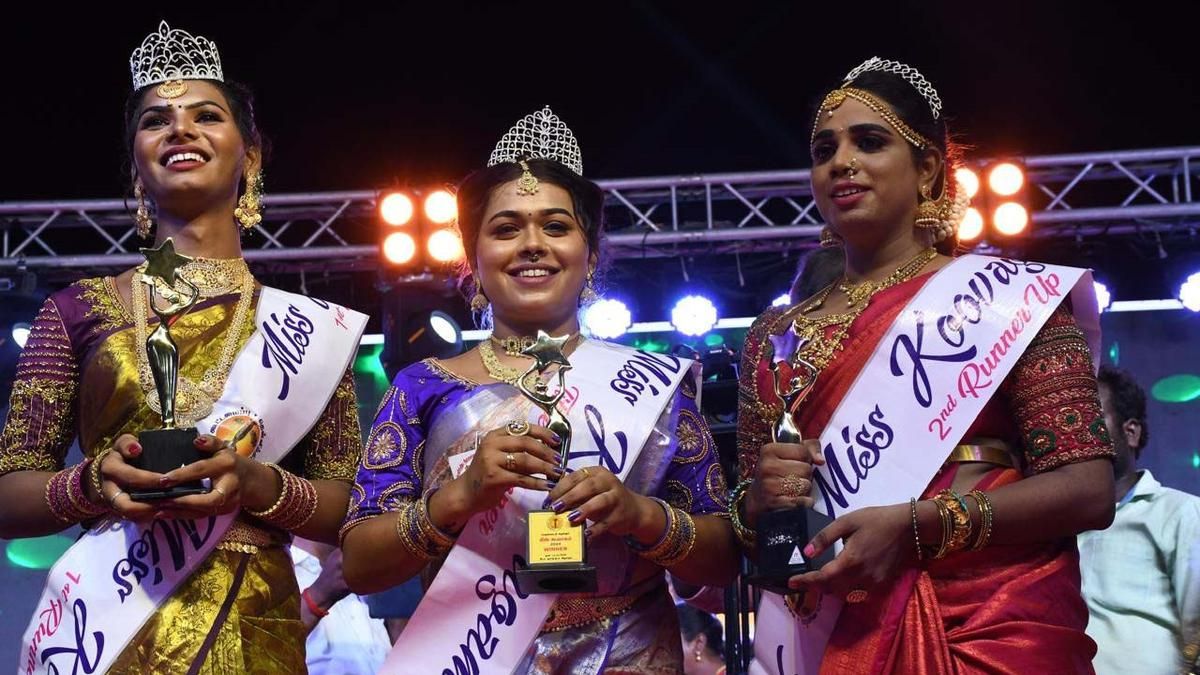 Riya from Erode wins Miss Koovagam beauty pageant in Villupuram, celebrating transgender community at Koothandavar festival.