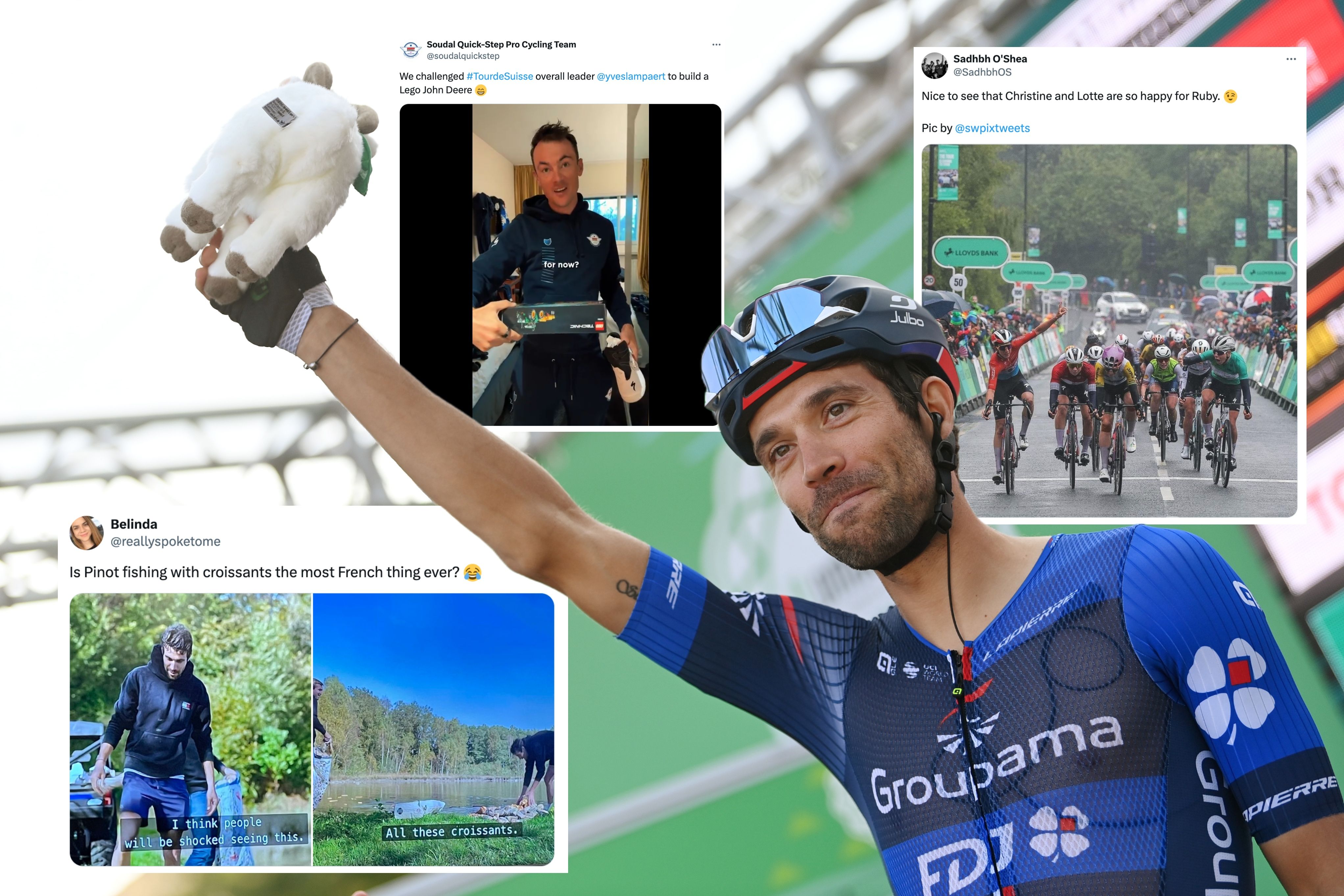 Tweets of the week: Thibaut Pinot throws croissants in a lake, Lizzie Deignan gets an MBE, and Yves Lampaert builds a tractor
