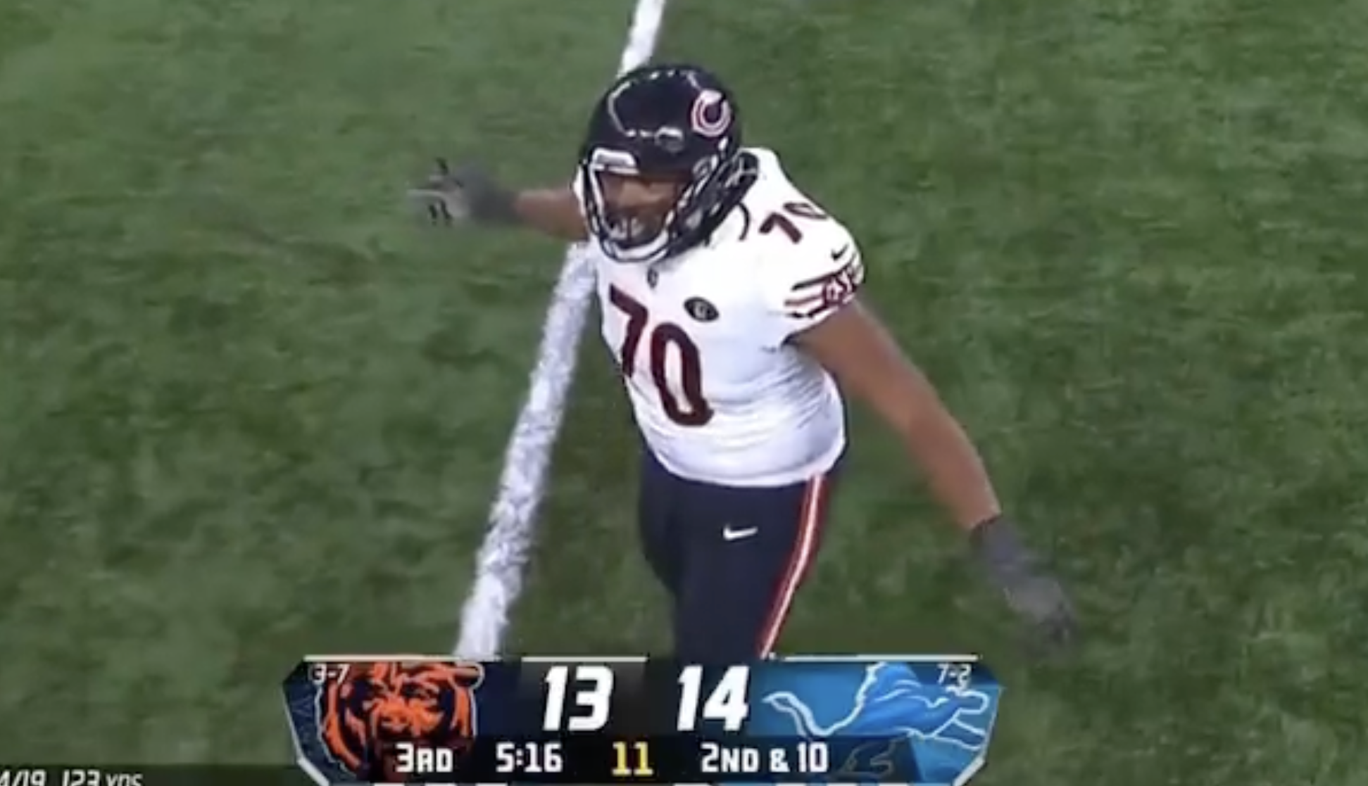 Mics picked up Bears OT Braxton Jones’ confusing NSFW reaction to getting pulled