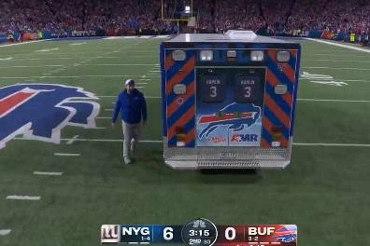 Ambulance carrying Buffalo Bills player off the pitch sports jersey of Damar Hamlin